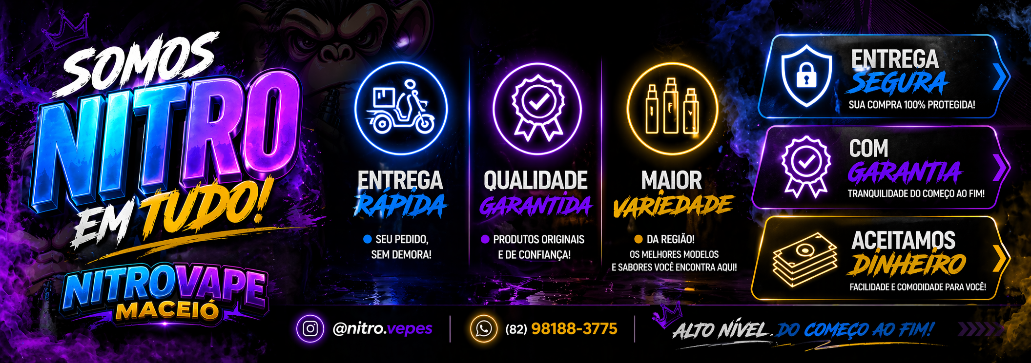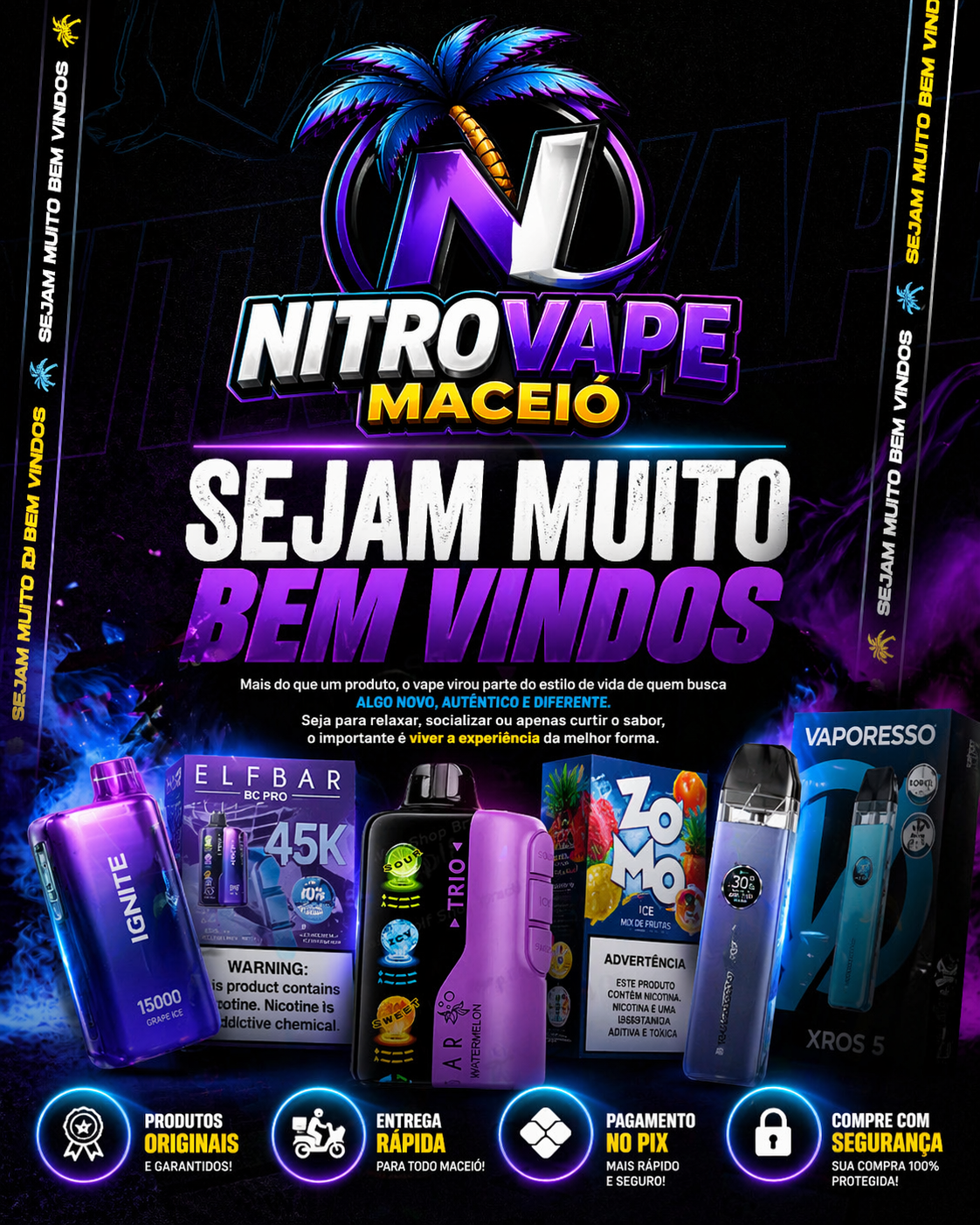 Nós, da NITROVAPE, entendemos o prazer e a experiência que você busca em cada tragada.